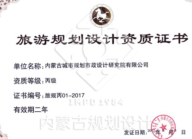 2017年3月,經(jīng)自治區(qū)旅游局審批,我院正式獲得旅游規(guī)劃設計丙級資質(zhì)證書。