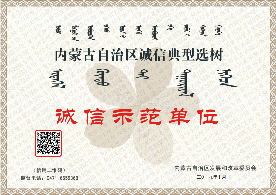 選樹誠信示范典型活動(dòng),是內(nèi)蒙古自治區(qū)大力弘揚(yáng)和踐行社會(huì)主義核心價(jià)值觀,充分發(fā)揚(yáng)誠信典型的引領(lǐng)示范作用、營造良好的誠實(shí)守信環(huán)境的又一重要的舉措,由內(nèi)蒙古自治區(qū)發(fā)改委組織。獲評誠信示范典型單位,不僅在內(nèi)蒙古自治區(qū)各級行政部門辦理行政許可等工作中得到便利服務(wù),而且能優(yōu)先享受政府各類優(yōu)惠政策。