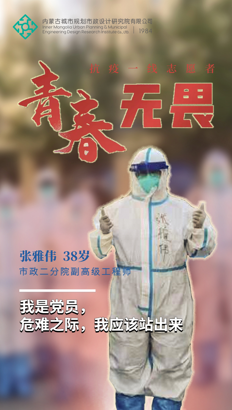 “我是黨員,危難之際我應(yīng)該站出來?!苯衲?8歲的張雅偉,是內(nèi)蒙古城市規(guī)劃市政設(shè)計(jì)研究院市政分院的設(shè)計(jì)師,一名“老”黨員。此次呼和浩特市突發(fā)疫情,他再次報(bào)名成為一名抗“疫”志愿者,用實(shí)際行動(dòng)踐行入黨誓言。
