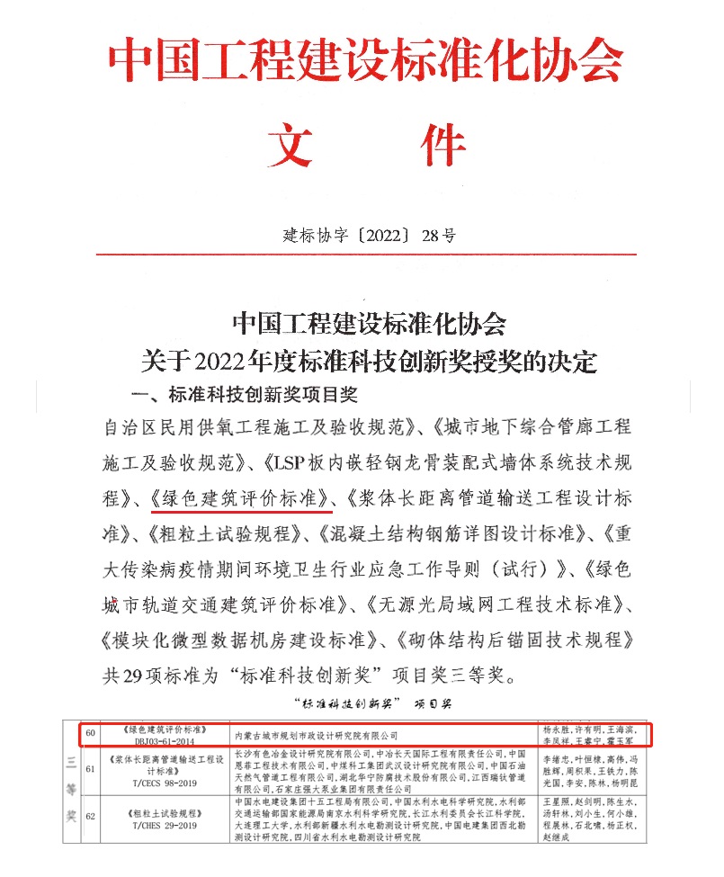 2月28日,2022年度標(biāo)準(zhǔn)創(chuàng)新獎(jiǎng)?lì)C獎(jiǎng)典禮暨中國(guó)工程建設(shè)標(biāo)準(zhǔn)化協(xié)會(huì)學(xué)術(shù)大會(huì)在北京召開(kāi)。我院主編的《綠色建筑評(píng)價(jià)標(biāo)準(zhǔn)》(DBJ03-61-2014)榮獲“標(biāo)準(zhǔn)科技創(chuàng)新獎(jiǎng)”項(xiàng)目獎(jiǎng)三等獎(jiǎng)。